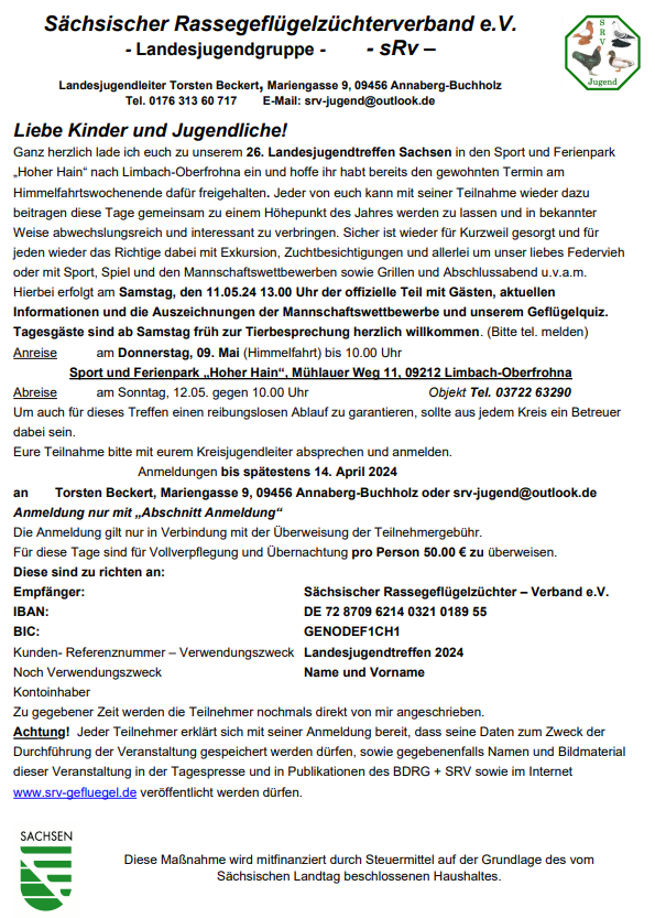 Alle Bedingungen sind auf der Internetseite Leipziger Rassegeflügelvereins zu finden.